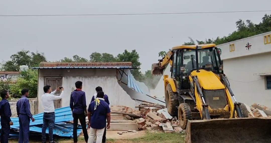 नयापारा खुर्द में अतिक्रमण पर प्रशासन की सख्ती, अवैध निर्माण पर चला बुलडोजर