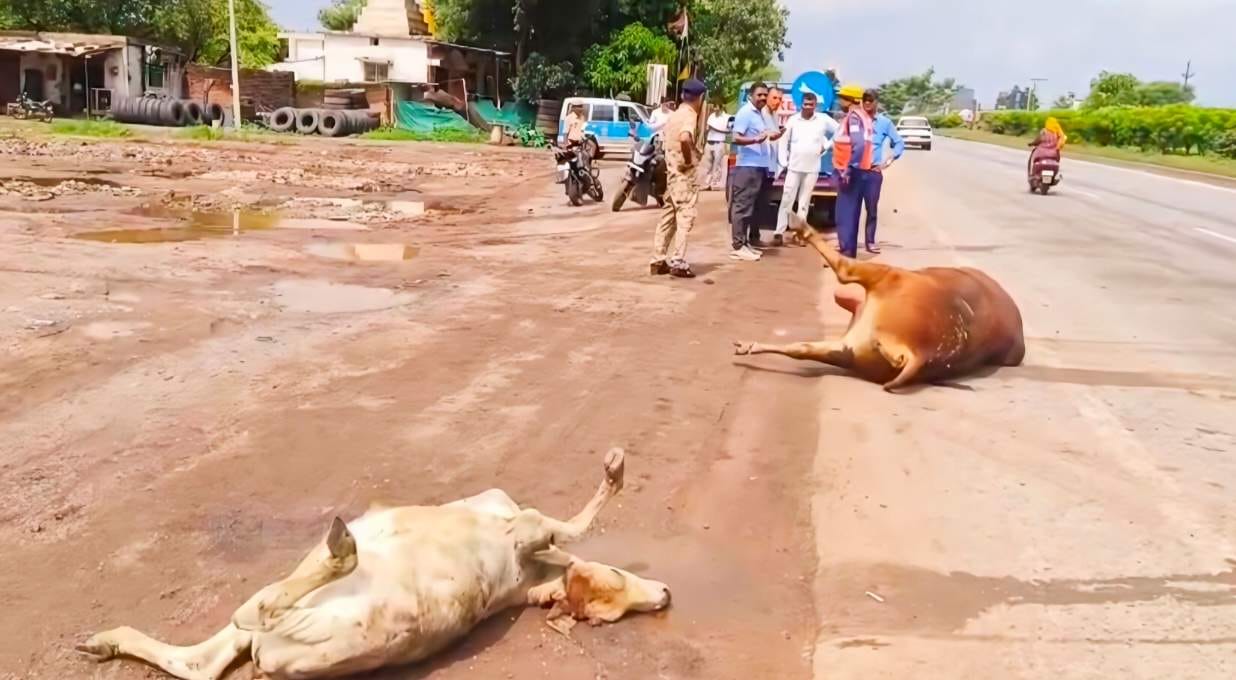 सुबह ग्रामीणों ने सड़क पर मृत मवेशियों को देखा और पुलिस को सूचना दी। सूचना मिलते ही सीएसपी पुष्पेंद्र नायक नगर निगम टीम के साथ मौके पर पहुंचे। मृत मवेशियों को सम्मानपूर्वक दफनाया गया।