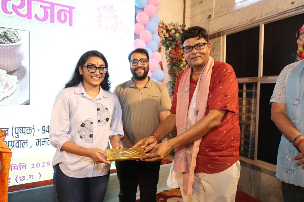 सभी को भाया छत्तीसगढ़ी व्यंजन – – दोपहर दो बजे अग्रोहा भवन में छत्तीसगढ़ी व्यंजन सामान्य वर्ग में प्रभारी सीमा रतेरिया, पायल अग्रवाल, रानू मित्तल, वंदना रतेरिया, हेमा जय अग्रवाल, ममता सतीश अग्रवाल, रोहिणी अग्रवाल के मार्गदर्शन में छत्तीसगढ़ व्यंजन प्रतियोगिता आयोजित की गई। वहीं छत्तीसगढ़ी व्यंजन की खुशबू से अग्रोहा भवन सुवासित हो गया और उपस्थित लोगों ने छत्तीसगढ़ी लजीज व्यंजनों का स्वाद ले बेहद खुश भी हुए।