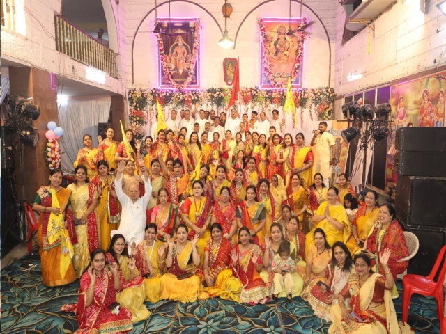 दादी समिति ने की महाआरती – – विगत दिवस दादी समिति की सभी सदस्यों ने माता माधवी, राधा ,कृष्ण के रूप में सजे बच्चों की मनमोहक छवि देखते ही बन रही थी। दादी जी के जयकारे के साथ नाचते झूमते अग्रसेन जी की आरती के लिये जाते दादी रानी सत्ती सेवा समिति के सदस्य पंक्तिबद्ध हो कर चल रहे थे। और डांडिया थामे पुरुष भी नाचते गाते चल रहे थे।दादी समिति की महिलाओं ने राजस्थानी श्रृंगार कर तेरह दादी की मनमोहक मूर्ति फूल मालाओं के साथ सजा के चल रही थीं। सबने एक स्वर में महाराजा अग्रसेन व माता माधवी की महाआरती की ओर फिर परिसर में दादी जी की महाआरती की ।राधा कृष्ण बने बच्चो ने रास की धुन में आकर्षक नृत्य किया और दादी समिति की महिला सदस्य भी जमकर थिरकीं।वहीं 108 दीपों से महाराजा अग्रसेन की महाआरती की और अग्रोहा भवन जय श्री अग्रसेन महाराज के जयकारे से गुंजायमान हो गया।समिति से जुड़ी सुरुती झुनझुनवाला व रचिता अग्रवाल गायिका ने मधुर आवाज से दादी जी की आरती व भजनों से अग्रोहा भवन परिसर को दादीमय किया।