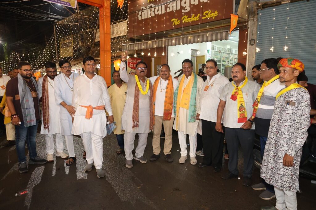 गांधी गंज में हुई महाआरती – – शोभा यात्रा के पूर्व सर्वप्रथम अग्र समाज के पुरुष व महिलाओं ने परंपरा अनुरुप विधिवत ढंग से पूजा – अर्चना व महाआरती की जिसमें अग्र समाज के सैकड़ों महिलाओं व अग्र बंधुओं व बच्चों ने भाग लिया। इसके पश्चात हाथों में ध्वजा लेकर और भव्य शोभा यात्रा में शामिल सभी सदस्यों को अग्र दुपट्टा, अग्र माला पहनाकर व भाल पर तिलक लगाकर आत्मीय स्वागत श्री अग्रसेन जयंती आयोजन समिति के कार्यक्रम संयोजक सुनील अग्रवाल लेंध्रा, अध्यक्ष अनूप रतेरिया, अशोक अग्रवाल (ब्लूचीप) मनीष पालीवाल,उपाध्यक्ष मनीष अग्रवाल (दवाई) कमलेश रतेरिया,आर्यन अग्रवाल, मुकेश गोयल प्रखर प्रवक्ता, आनंद मोदी, दीपक जामगांव, प्रचार प्रसार प्रमुख अधीश रतेरिया, मीडिया प्रभारी प्रकाश निगानिया ऐश अग्रवाल, महिला अध्यक्ष श्रीमती रेखा महमिया, कविता बेरीवाल, उपाध्यक्ष रीना बापोड़िया, शालू गोयल, कशिश अग्रवाल ने शोभा यात्रा में शामिल सभी सदस्यों का किया।जो बेहद ही खूबसूरत मंजर रहा और जय श्री अग्रसेन के जयकारे से गांधी गंज गुंजायमान हो गया।