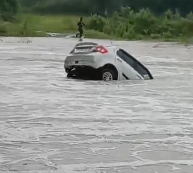 “रायगढ़ में उफान नाले में फंसी स्विफ्ट कार, ग्रामीणों ने तैरकर बचाई चालक की जान”