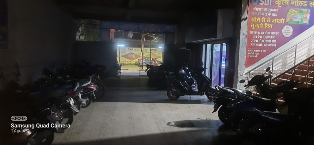 सिंहघोष/रायगढ़-25.10.25- शहर के मध्य बेलादूला,सिंधी कॉलोनी स्थित एसबीआई की एग्रीकल्चर ब्रांच जो कि बीएसएनएल ऑफिस के ठीक सामने प्रथम तल पर है साथ ही पार्किंग में एटीएम भी स्थित है जिसकी सुरक्षा भगवान भरोसे ही है मामला यह है कि एसबीआई की इस ब्रांच के ठीक नीचे बैंक की खुली,सार्वजनिक पार्किंग है जो की पिछले 15 दिनों से दो अंधेरे मॆ डुबी हुई है अब इसे सुरक्षा में चुक ना कहे तो क्या कहे?