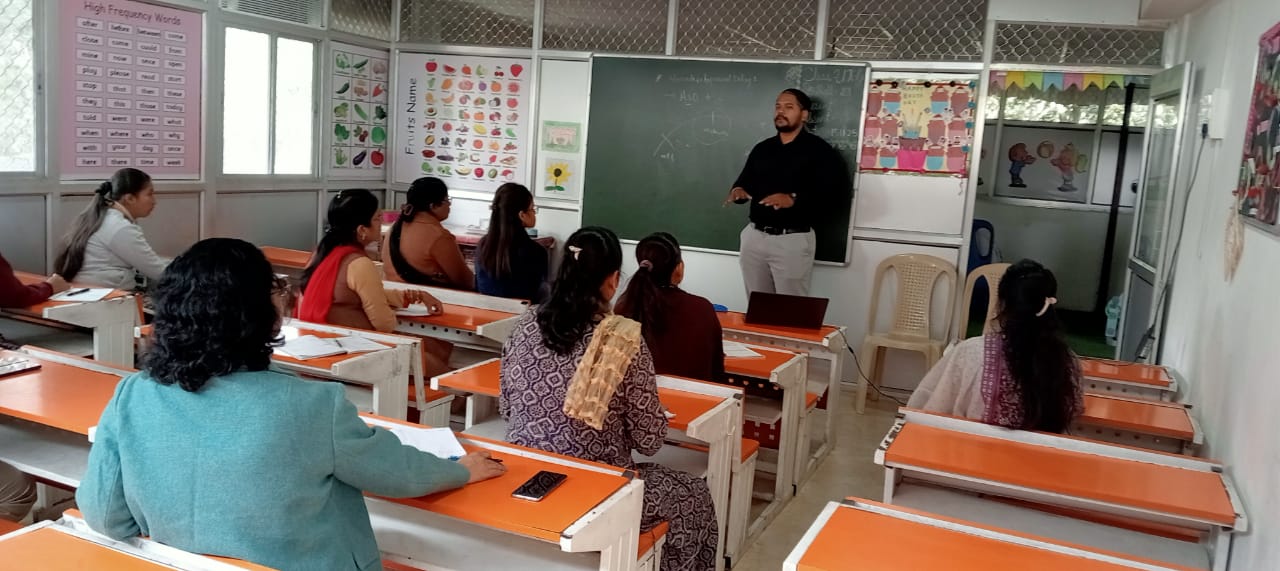 शनिवार को टीचर्स के लिए ट्रेनिंग सेशन का आयोजन किया जिसमें नगर के प्रतिष्ठित थैरेपी सेन्टर “मॉम्स बिलीफ” के श्री नितिन पात्रा जो कि चाइल्ड साइकोलॉजी के एक्सपर्ट हैं, ने टीचर्स को बच्चों में आजकल सामान्य तौर पर पाई जाने वाली समस्याओं के बारे में बताया एवं उसके निराकरण के सरल और आम तरीकों के बारे में भी जानकारी दी। टीचर्स ने भी अपने अनुभव के आधार पर विस्तृत रूप से बातचीत की।