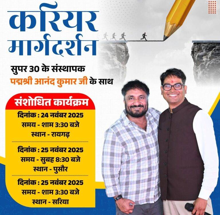 युवा शक्ति को दिशा देने रायगढ़ में 24–25 नवंबर को भव्य करियर महोत्सव, पद्मश्री आनंद कुमार करेंगे संवाद