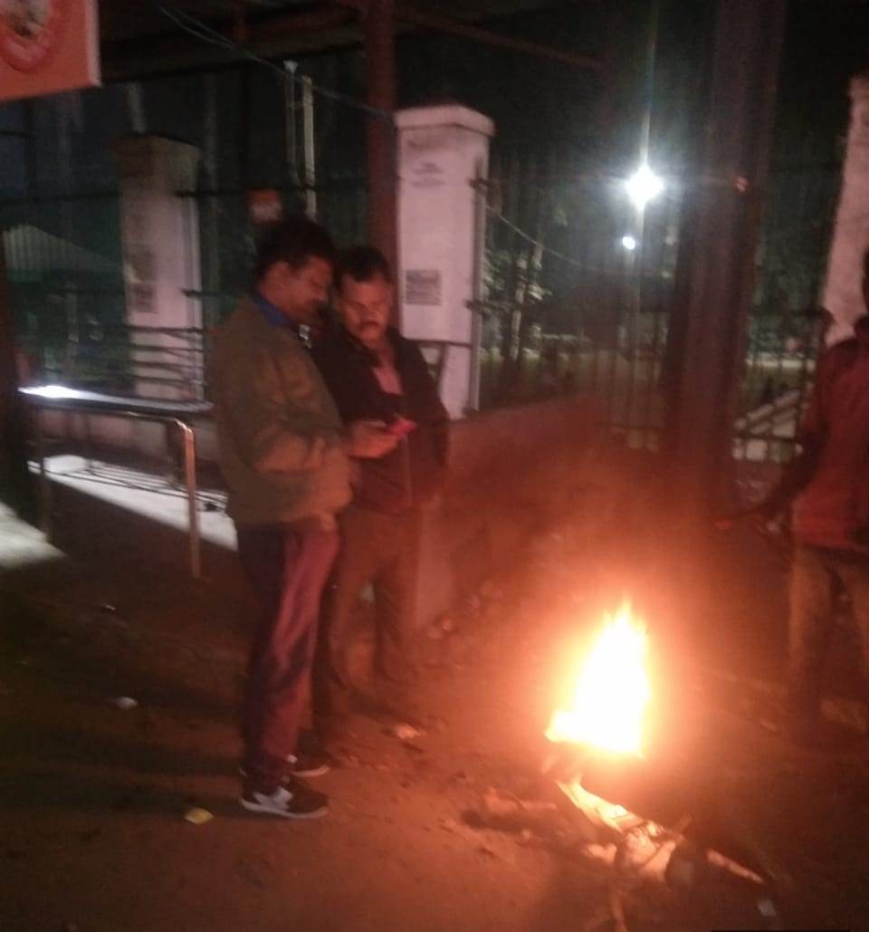शहर के प्रमुख स्थलों पर अलाव जलाए गए