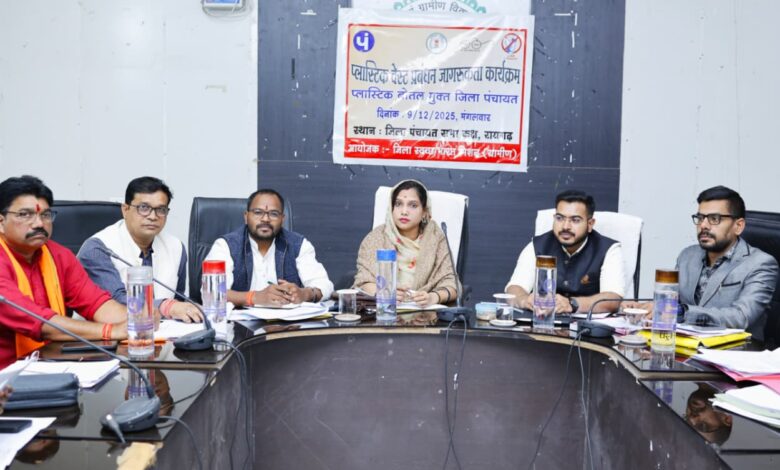 रायगढ़, 9 दिसम्बर 2025/ जिला पंचायत अध्यक्ष श्रीमती शिखा रविन्द्र गबेल की अध्यक्षता में आज जिला पंचायत रायगढ़ के सभाकक्ष में सामान्य सभा की बैठक आयोजित हुई, जिसमें कई महत्त्वपूर्ण बिंदुओं पर विस्तार से चर्चा की गई। बैठक के दौरान प्लास्टिक वेस्ट मैनेजमेंट के अंतर्गत प्लास्टिक बोतल मुक्त जिला पंचायत अभियान का औपचारिक शुभारंभ किया गया।