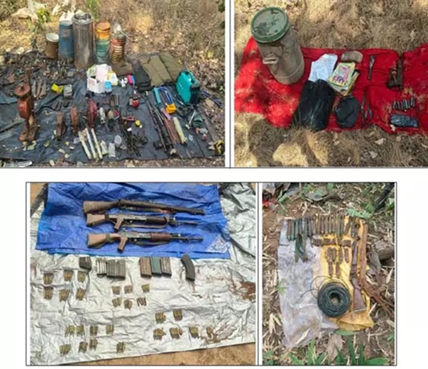 मैनपुर–ओडिशा सीमा पर नक्सलियों का बड़ा हथियार डंप बरामद