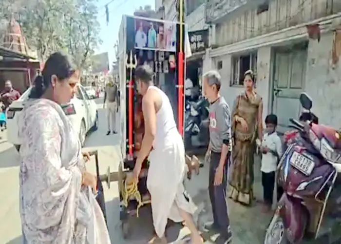 रायगढ़। कोसा साड़ी के एक थोक व्यापारी के करीब डेढ़ करोड़ रुपये बाजार में फंस जाने का मामला सामने आया है। रकम वापस नहीं मिलने से परेशान व्यापारी ने अनोखा विरोध प्रदर्शन शुरू कर दिया है। वह देनदारों और देवी-देवताओं की तस्वीरों से सजे रथ के साथ दंडवत यात्रा कर रहा है और मंदिरों में मत्था टेककर अपनी उधारी राशि वापस दिलाने की प्रार्थना कर रहा है।