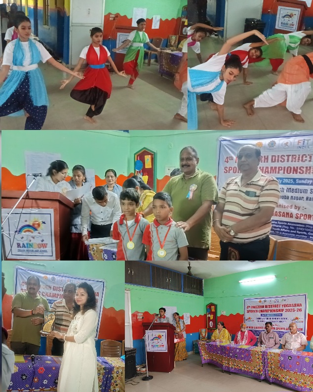 रायगढ़। रेनबो विद्यालय, शैलेन्द्र नगर रायगढ़ में आज 4वीं जिला स्तरीय योग प्रतियोगिता का आयोजन भव्य रूप से संपन्न हुआ। कार्यक्रम का आयोजन विद्यालय प्रांगण में किया गया, जिसमें जिले के कई विद्यालयों के प्रतिभागी छात्र-छात्राओं ने उत्साहपूर्वक भाग लिया।