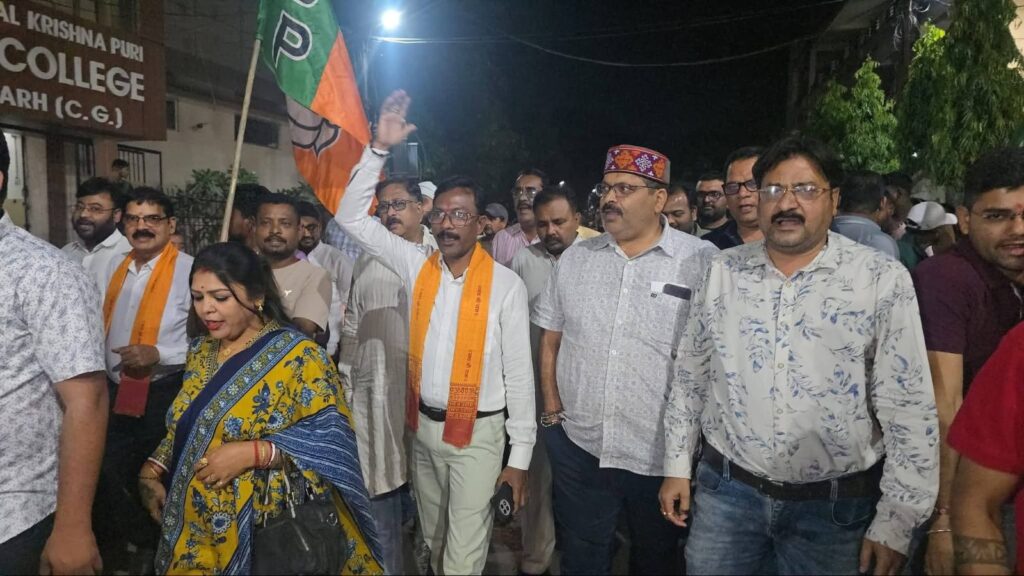 रायगढ़। छत्तीसगढ़ में नक्सलवाद के खिलाफ जारी अभियान में मिली सफलता और लगातार हो रहे सरेंडर के बीच भाजपा कार्यकर्ताओं ने रायगढ़ में पैदल मार्च निकालकर खुशी और श्रद्धा का प्रदर्शन किया। जिला भाजपा के पदाधिकारी और कार्यकर्ता कार्यालय से कारगिल चौक तक नारेबाजी करते हुए पहुंचे, जहां दीप जलाकर नक्सली हमलों में शहीद हुए जवानों को अश्रुपूरित श्रद्धांजलि अर्पित की गई।